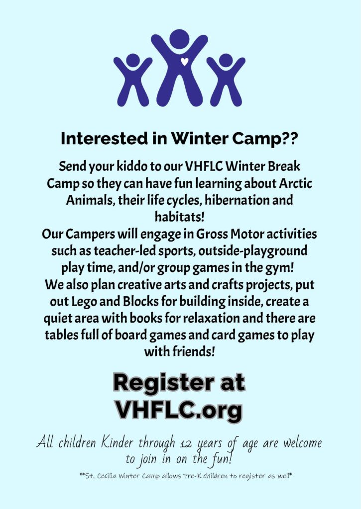 VHFLC is thrilled to offer a fantastic lineup of camp options throughout the year. Our quality camp programs let children in our communities dive into fun and creativity during school breaks; The more kiddos that join us, the more amazing camp experiences we can create! All children (Kindergarten through 5th grade) are welcome—friends, family, and neighbors—you don’t have to be enrolled in our current programs to join the exciting activities at Camp. We cannot wait to make some unforgettable memories together! Please feel free to reach out to our Admin team if you have more questions!